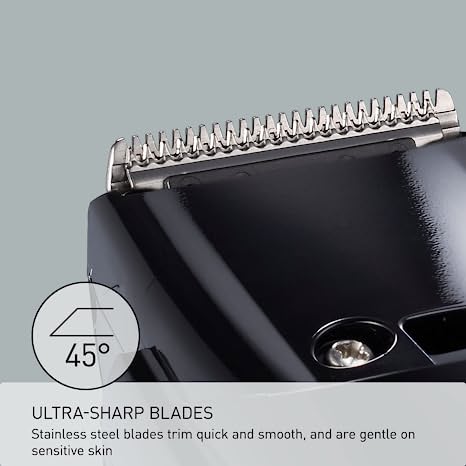 When you need a mens beard and mustache trimmer that has power and precision, and is easy to use, reach for the Panasonic ER-GB42-K. Its 19 adjustable settings ensure that you can always get the precise look and feel you want; a dial conveniently positioned on the handle makes adjusting the hair lengths quick and easy. The precision 45-degree blade cutting system cuts hairs cleanly and easily with ultra-sharp, hypoallergenic blades, helped by a snap-on comb attachment that lifts uncooperative hairs and makes them easy to cut. The ergonomic rubber handle on the mens beard trimmer ensures maximum precision and control while trimming as well. This 100% washable wet dry trimmer makes it easy to trim in or out of the shower, and it comes with an A/C wall charger that provides 50 minutes of trimming power, and is portable for use when traveling. To help your ER-GB42-K mens hair trimmer maintain peak performance, be sure to rinse blades after each use. Blades should be replaced about once every three years or when dulled with the Panasonic WER9606P Replacement Trimmer Blade.