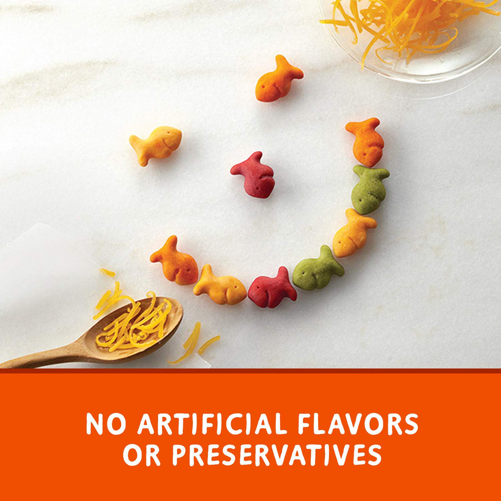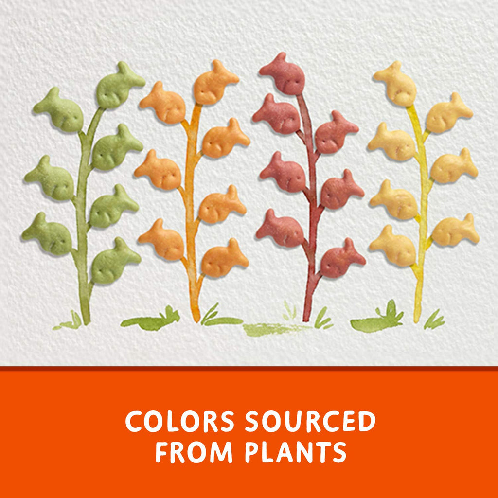 10 snack packs of Goldfish Colors Cheddar crackers, 0.9 ounce each, baked with real cheese and colors sourced from plants