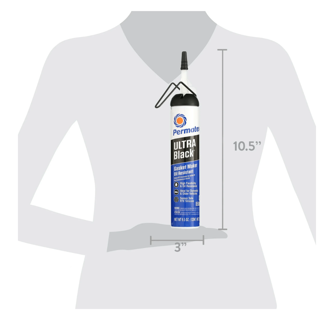 Permatex 85080 Ultra Black RTV Silicone Gasket Maker is a high-performance, sensor-safe sealant ideal for heavy-duty automotive applications. It offers maximum oil resistance, flexibility, and durability in high-stress environments. This 9.5 oz PowerBead™ can is perfect for sealing valve covers, oil pans, timing covers, and more. Withstands temperatures up to 500°F (260°C). Non-corrosive, OEM-approved, and ideal for high-flex, high-oil-resistance needs.