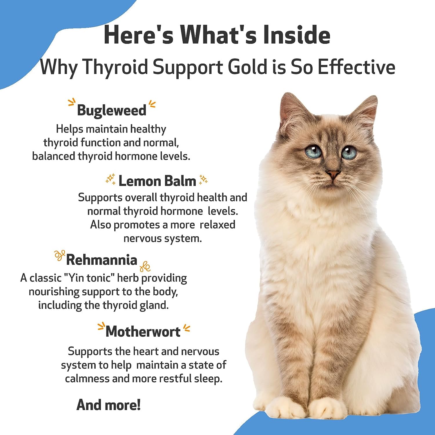 ✅ THYROID BALANCE. Thyroid hormones affect virtually every part of the body. Thyroid Support Gold provides gentle, natural support to cats with hyperthyroidism to help promote long-term, normal function of the thyroid gland.
