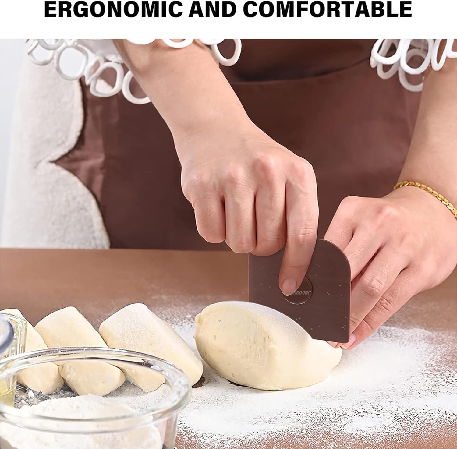 Set includes 5 reusable plastic pan scrapers (2.36" x 2.36"). Upgraded ABS material is stronger and more durable than PP, with improved anti-slip grip and increased weight for better handling. BPA-free, food-grade, and heat-resistant up to 215°F. Non-stick surface is easy to clean. Sharp, stiff edges and 4 angled corners remove food without scratching cookware. Also great for cutting dough, scraping residue from walls, tables, and more. Versatile and built to last.