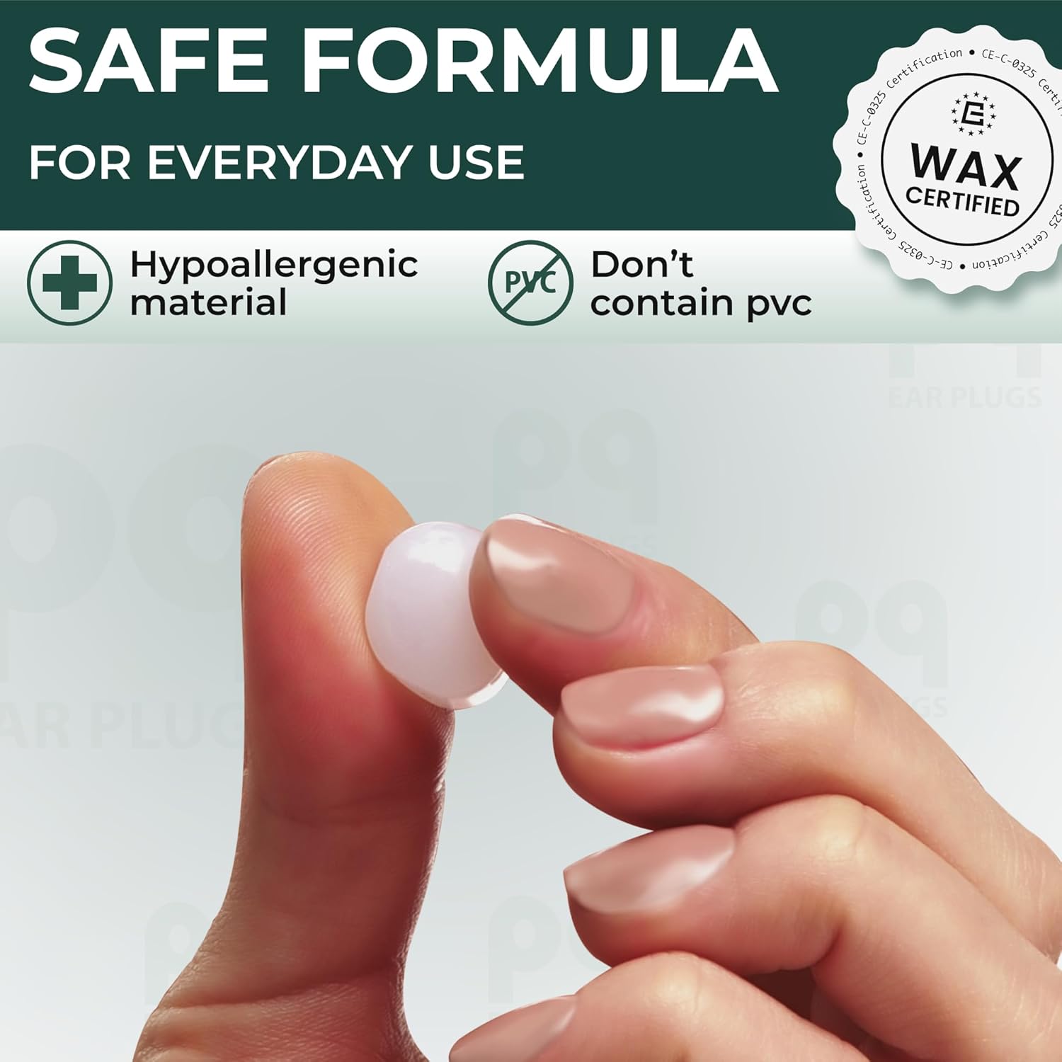 - Ear protection in water: PQ Wax Gel Swimming earplugs are waterproof, so they protect your ears from water when swimming or taking a shower. Wax earplugs don’t fall out and don’t pressure your ears like rubber ear plugs