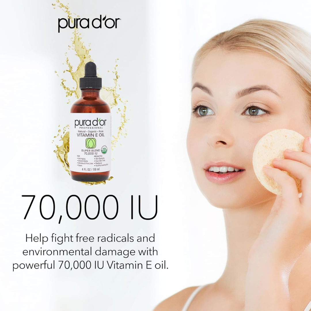 Pura D'Or Professional Vitamin E Oil Super Blend 70,000 IU 4fl oz / 118 mL