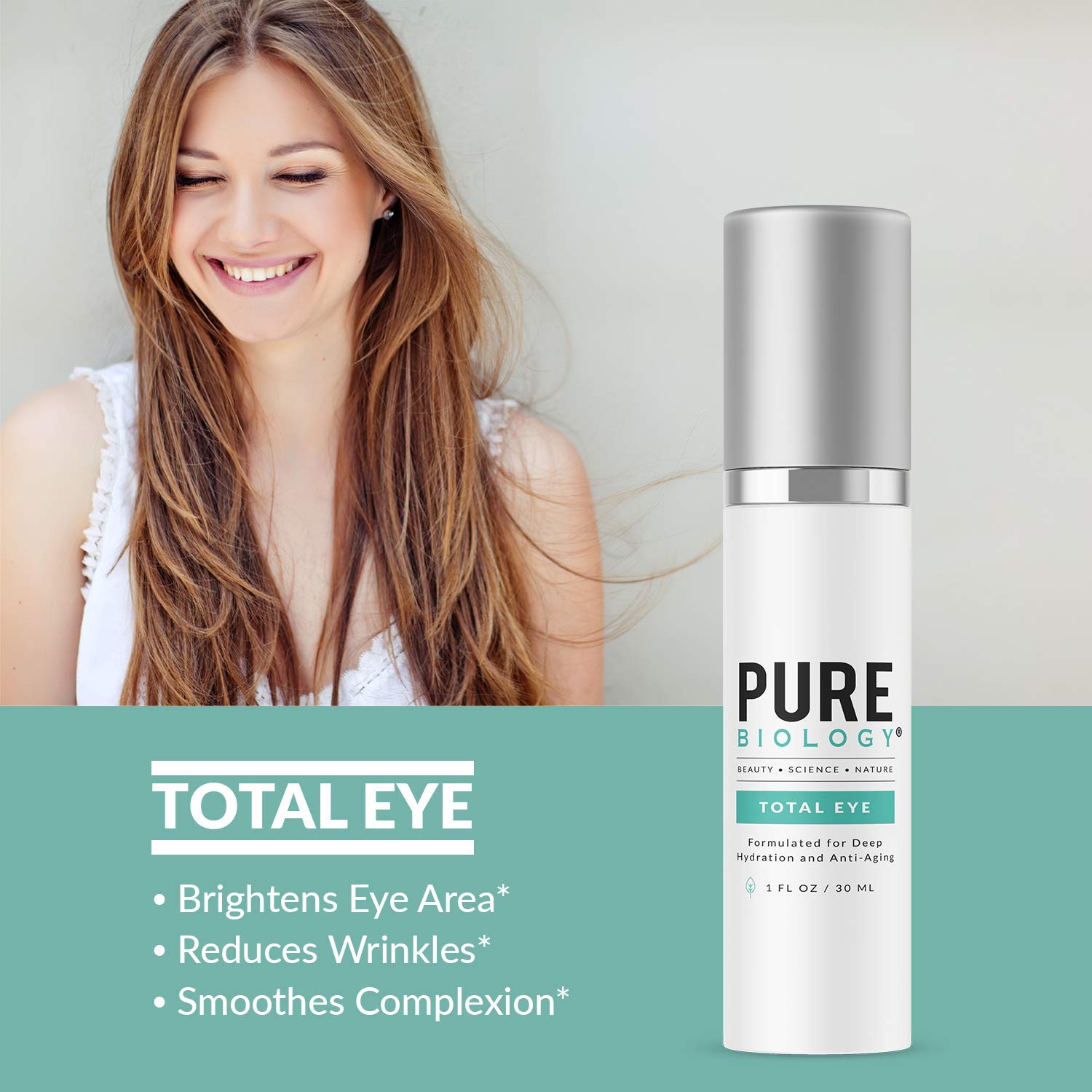 Pure Biology Total Eye Cream Serum with SymLift Vitamin C + E (1 fl oz)