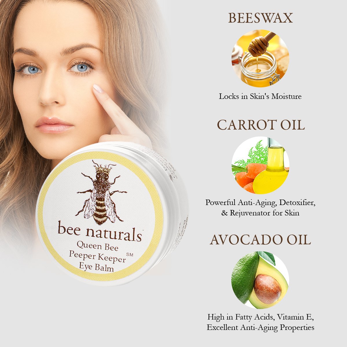 Queen Bee Naturals Eye Balm Peeper Keeper, Moisturizes Helps Reduce Crows Feet, Wrinkles & Fine Lines, 0.6 oz.