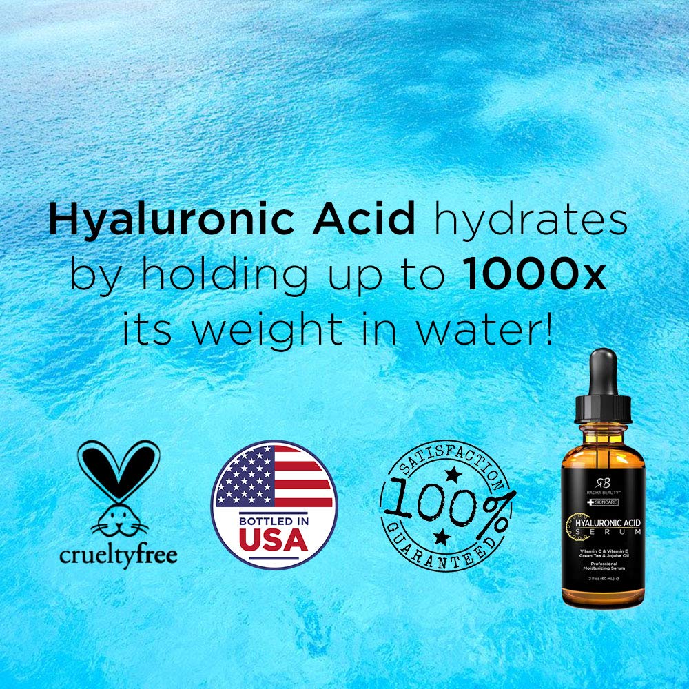 Our Hyaluronic Acid Serum is a powerful moisture-binding concentrate that keeps skin supple and hydrated. Naturally found in the human body, hyaluronic acid has the incredible ability to retain high levels of moisture in the skin. This serum helps keep the skin hydrated all day and night with an invisible veil of moisture. It achieves ultimate hydration by attracting up to 1000 times its weight in water from the moisture in the air. Use this to help replenish the moisture content of aging and environmentally damaged skin, restore youthful radiance, smooth the look of fine lines, and increase the skin’s ability to retain moisture. Leave skin fresh and fabulous.
