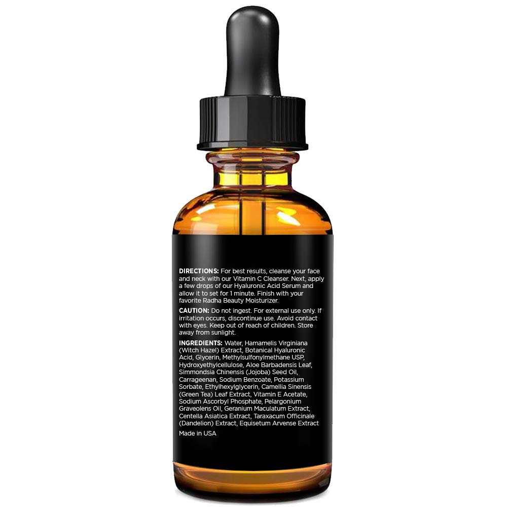 Radha Beauty Hyaluronic Acid Serum Infused with Vitamin C & E, Green Tea & Jojoba Oil, 2 fl.oz / 60ml