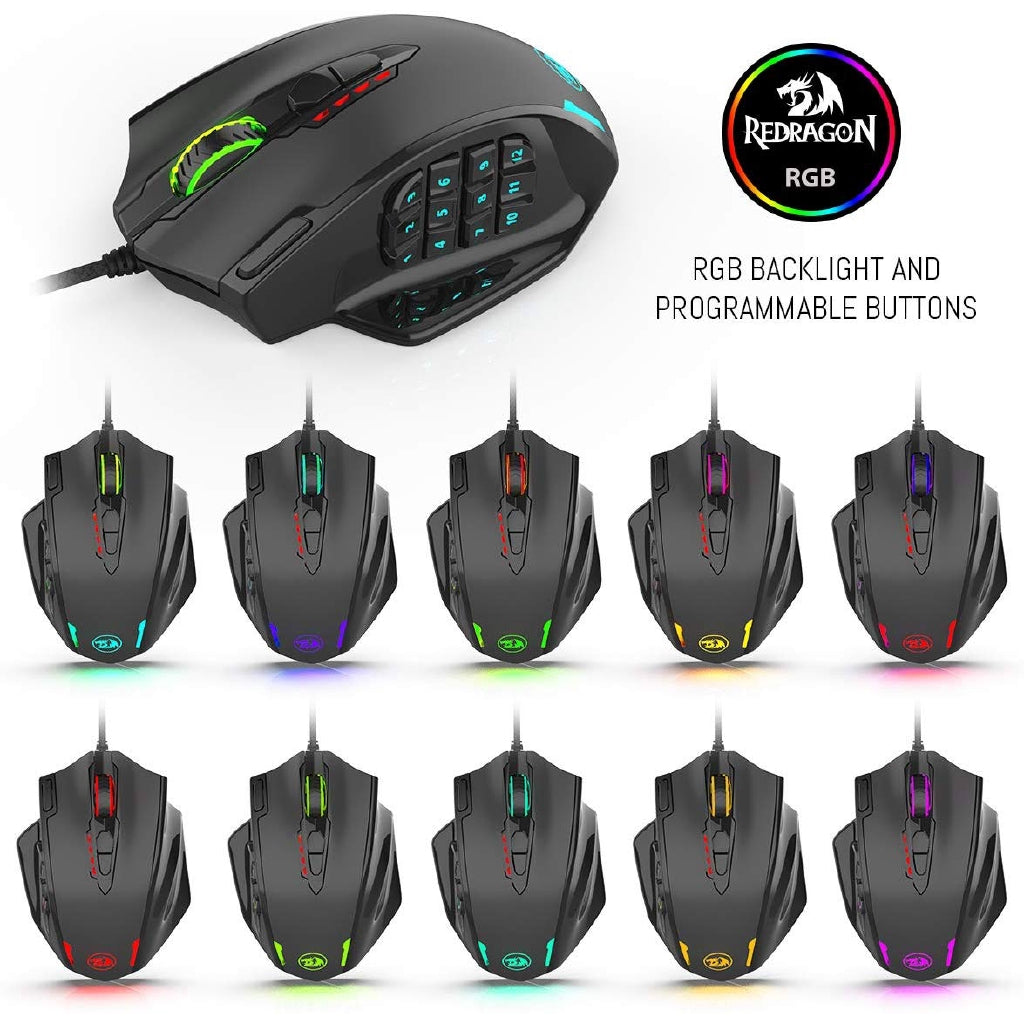 Redragon M908 Impact RGB LED Gaming Mouse w Side Buttons Laser Wired 12400DPI