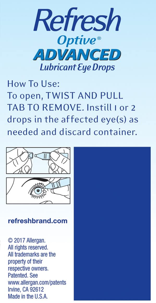 Refresh Optive Advanced Lubricant Eye Drops Triple-Action Relief, 30 Single-Use Containers 0.4 ml each