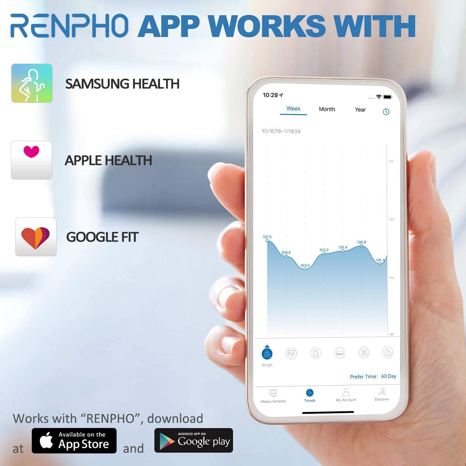 Monitor your progress. Renpho connects with the apps to help motivate toward your goals, save historical data, and track your daily, weekly, and monthly progress.