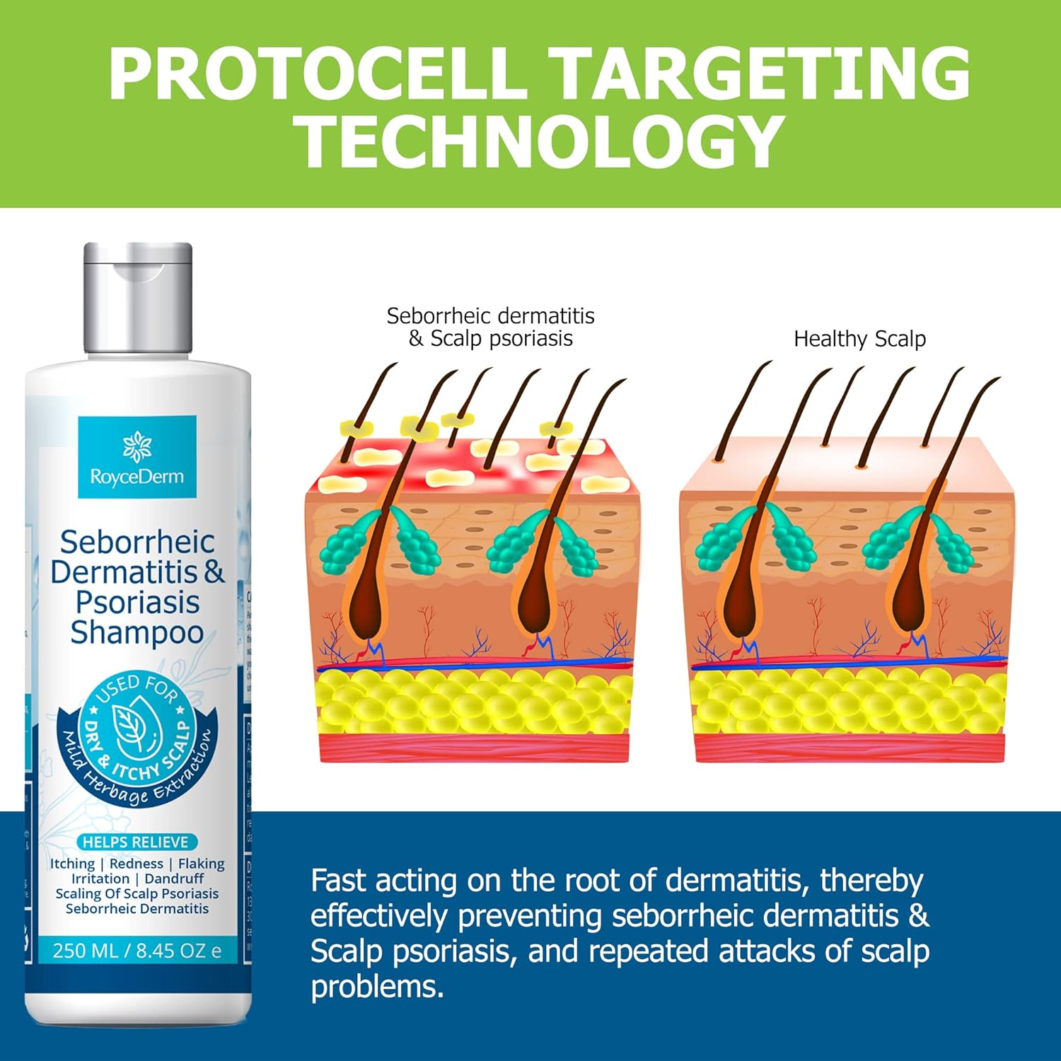 Immerse yourself in the soothing care of Roycederm, expertly crafted to provide fast relief. Our unique formulation targets Seborrheic Dermatitis, Psoriasis, Folliculitis, and Dandruff, offering significant improvement from the first application. With Roycederm, a rejuvenated, itch-free scalp is within your reach!