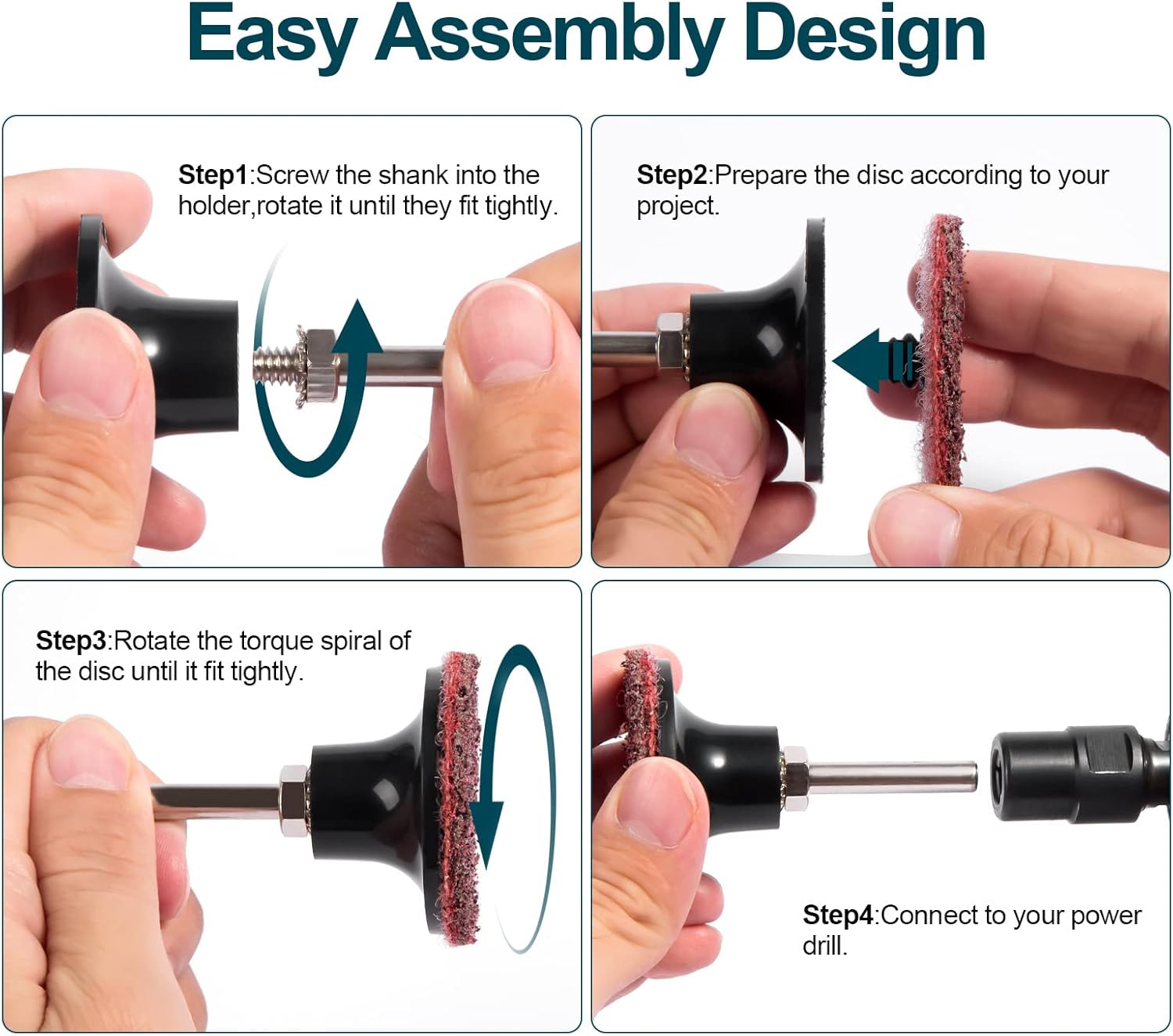 SATC 46PCS 2-inch sanding discs with quick-change roll lock design include coarse, medium, and fine surface conditioning discs for grinding, polishing, rust, paint, and burr removal. Compatible with die grinders, this kit comes with a 1/4" disc holder for easy attachment—perfect for metal, wood, and auto body surface prep.