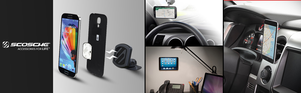The MagicMount is a new magnetic car phone mount system which makes it easy to secure and charge your device via your vehicle's power outlet. The powerful neodymium magnets hold your phone and device securely in place. The 4-Axis, 360 Degree adjustable head and mounting arm allow for optimal viewing. Cradle-free design permits safe, easy one-handed device use and access to all controls and ports.