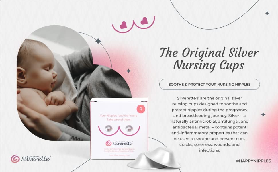 The Original Nipple Protector Sheild for Nursing Newborns: SILVERETTE are the ORIGINAL silver nursing cups and breast shields that fully licensed silversmiths have crafted in Italy to provide sore nipples and crack nipple relief. Breast Feeding Essentials: Silverette cups are easy and comfortable to use-no other cream or lotions are needed for proper healing. In addition, SILVERETTE is the lightest healing cup available: one cup weighs only 0.1 oz. Soothe And Protect: Soothe sore or cracked nipples with our silver nipple shield.; The only silver nipple shell caps that work. 100% natural, safe and effective; No other creams or lotions needed; No chemicals to moms or babies. Nickel free.