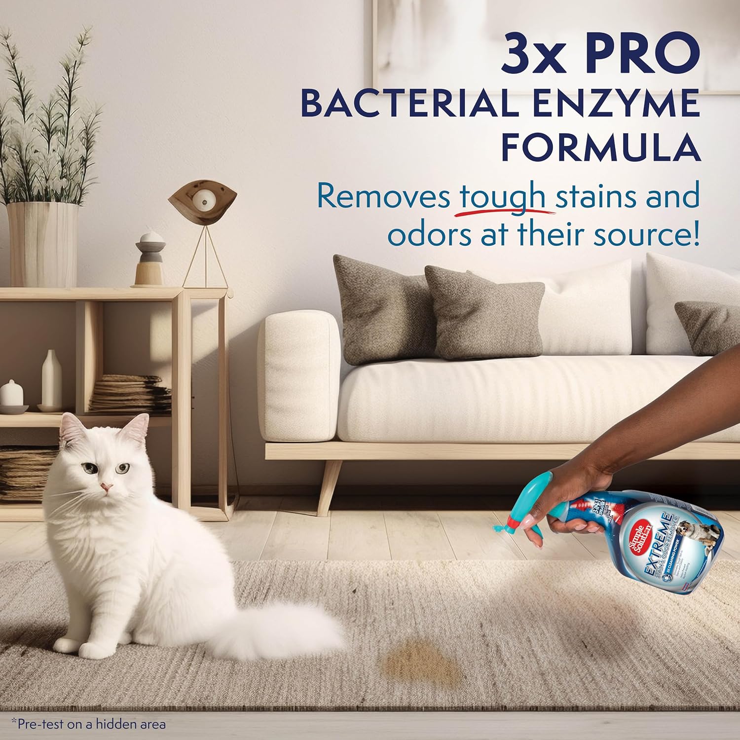 Save your home from tough pet stains with Simple Solution® Extreme Stain & Odor Remover. This powerful pet stain and odor remover is formulated to help break down, neutralize, and permanently remove extreme stains such as dog and cat urine, feces, or vomit. It’s designed to be used on carpets, upholstery, bedding, fabric, and other water-safe surfaces throughout your home. This pet stain and odor remover is crafted to discourage repeat accidents and comes equipped with a multifunctional three-in-one nozzle sprayer with foam, mist, and stream settings. It’s made to be safe for use around children and pets when applied as directed.