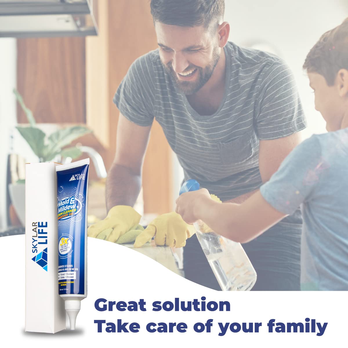 Introducing Skylar Life's Mold & Mildew Stain Cleaner Remover Gel in a practical 150ml (5 fl oz) container. This powerful cleaning solution is specially formulated to effectively tackle stubborn mold and mildew stains. With its unique gel consistency, it adheres to vertical surfaces, allowing for targeted application and thorough stain removal. Ideal for use in bathrooms, kitchens, and other moisture-prone areas, this cleaner penetrates deep into surfaces to eliminate mold and mildew stains, leaving them looking fresh and revitalized. Say goodbye to unsightly stains and hello to a cleaner, healthier environment with Skylar Life Mold & Mildew Stain Cleaner Remover Gel.