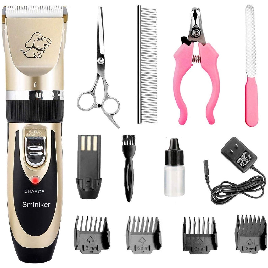 Sminiker Pet Hair Clipper Pro, Professional Rechargeable Cordless Grooming Clippers Pet Grooming Kit