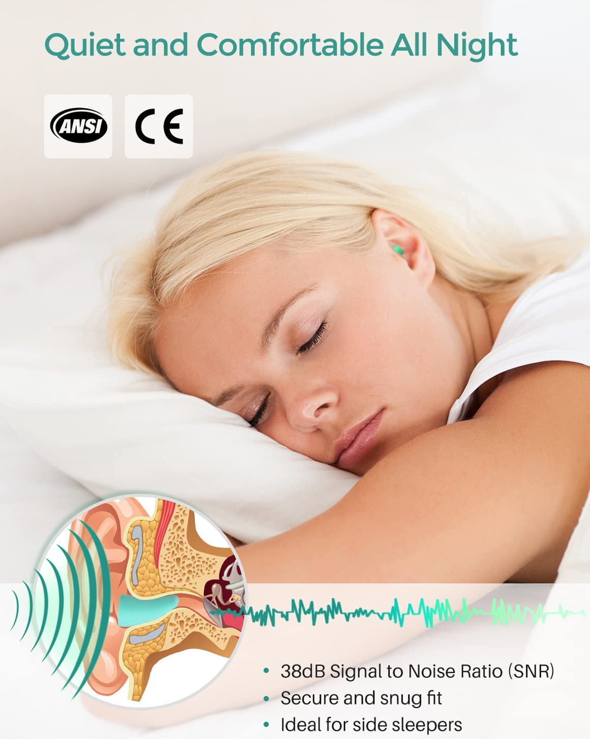 High Signal to Noise Ratio (SNR)--38dB: The earplug brand recommended by doctors, and certified by ANSI S3.19-1974 and CE. Reduces noise by 38dB. Prevents hearing loss and relieves annoyance and disturbance in daily life and noisy environments. Maximum Comfort: Made of environmental and hypoallergenic polyurethane foam material, ensuring safety and comfort for long hours. The soft surface and slow rebound enable low pressure and sealed fit. Carrying Case Included: Keeps the foam earplugs safe ad clean on the go, you can enjoy quietness anywhere, anytime. 60 Pairs: Value pack for your whole family and long-term use.