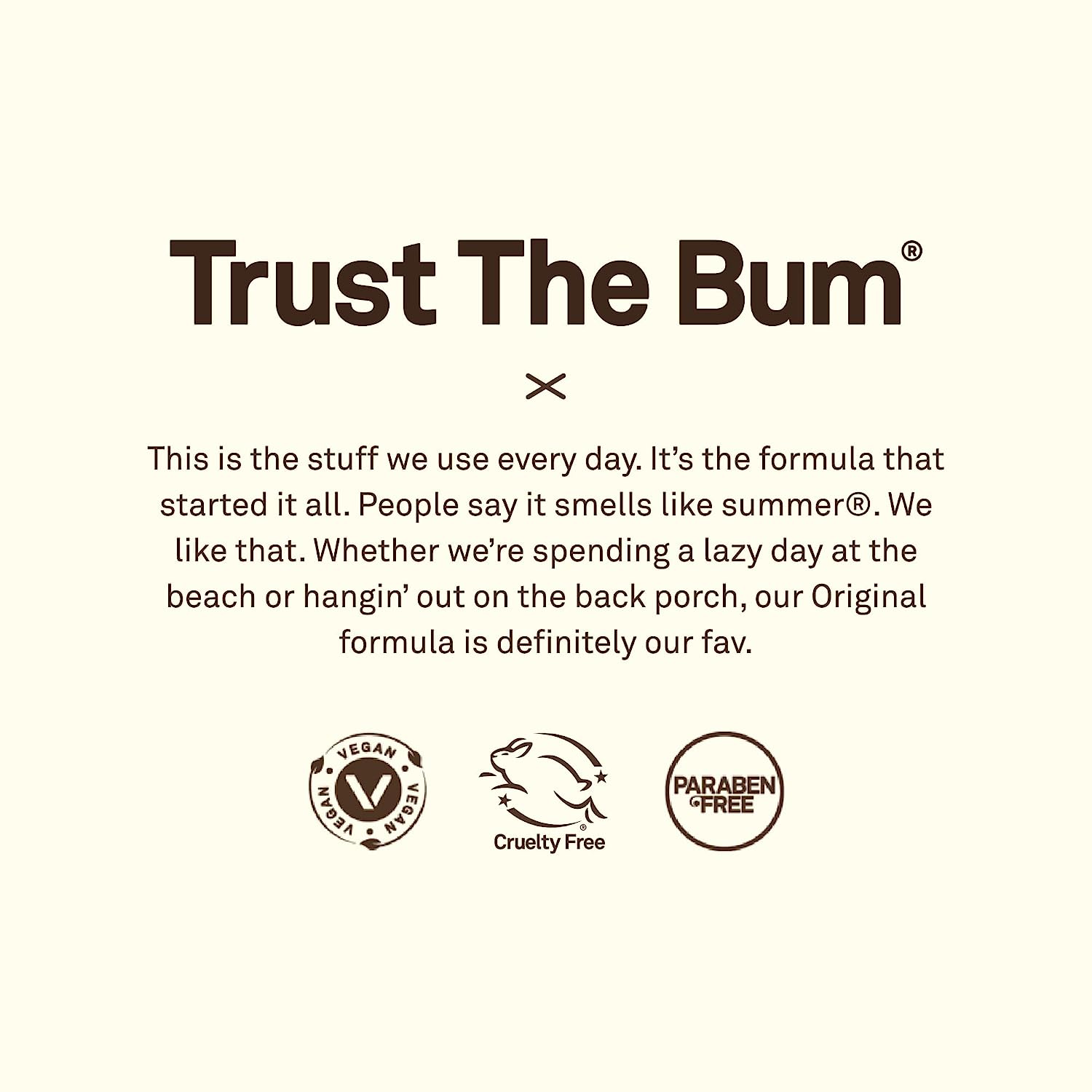 ORIGINAL SPF 50 SUNSCREEN LOTION . This is the stuff we use every day. It’s the formula that started it all. People say it smells like summer. We like that. Whether we’re spending a lazy day at the beach or just hangin’ out, our Original formula is definitely our fav. TRUST THE BUM. What does that mean? It means trust us, the ones who live on the beach and need products that work on the most intense days in the sun. The simple truth is, when you make products to protect the ones you love, you make ‘em better.