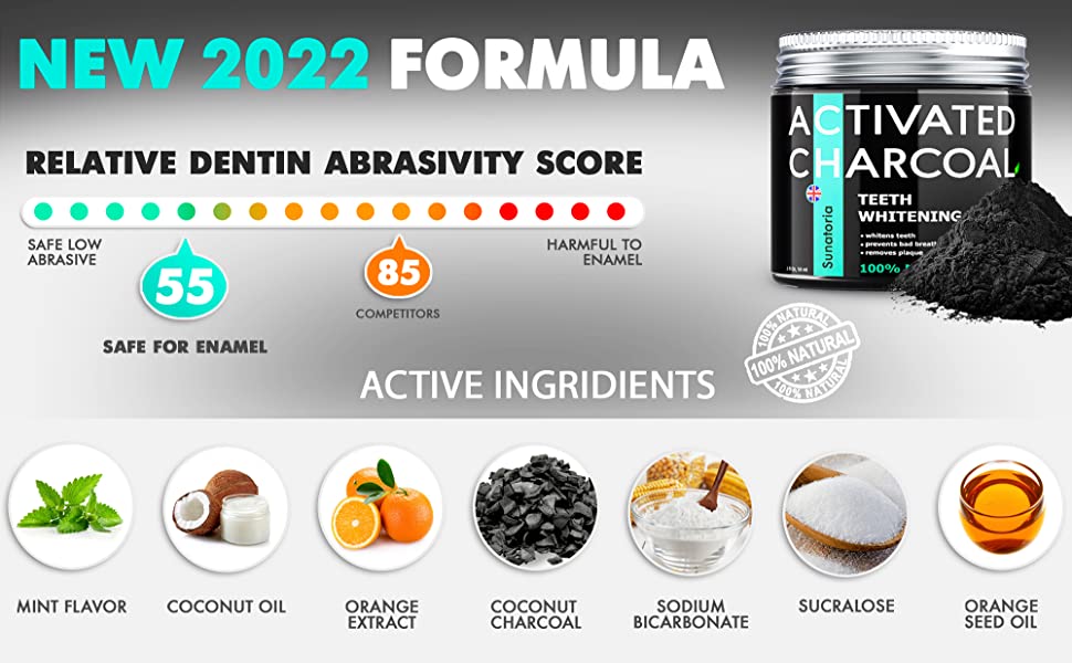 Sunatoria Activated Charcoal Teeth Whitening Powder Removes Plaque Prevents Bad Breath 2 Fl Oz (59ml)