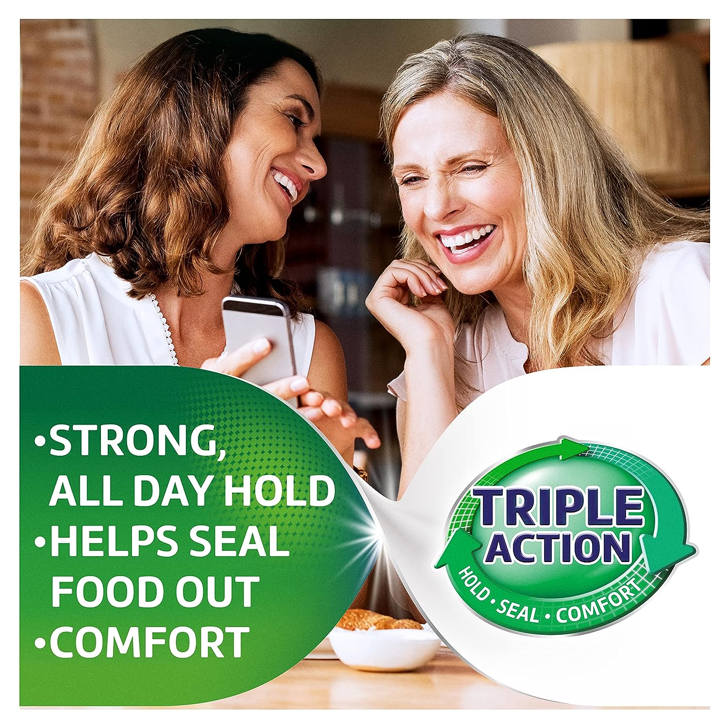 Super Poligrip Extra Care Denture Adhesive Cream keeps your dentures or partial dentures in place all day long to help you eat, speak and smile with confidence. Containing no artificial colors or flavors, this zinc free denture cream creates a layer between your dentures and gums that provides 12-hour hold with a comfortable fit. This denture cream adhesive also helps prevent gum irritation by sealing out up to 74 percent more food particles., each denture and partial denture adhesive tube comes with an ooze-control tip to ensure you only use the right amount.