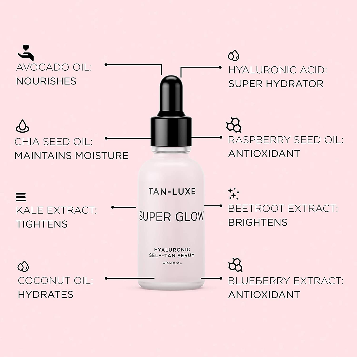 TAN-LUXE Super Glow Hyaluronic Self-Tan Serum Gradual, 1.01 fl.oz / 30ml