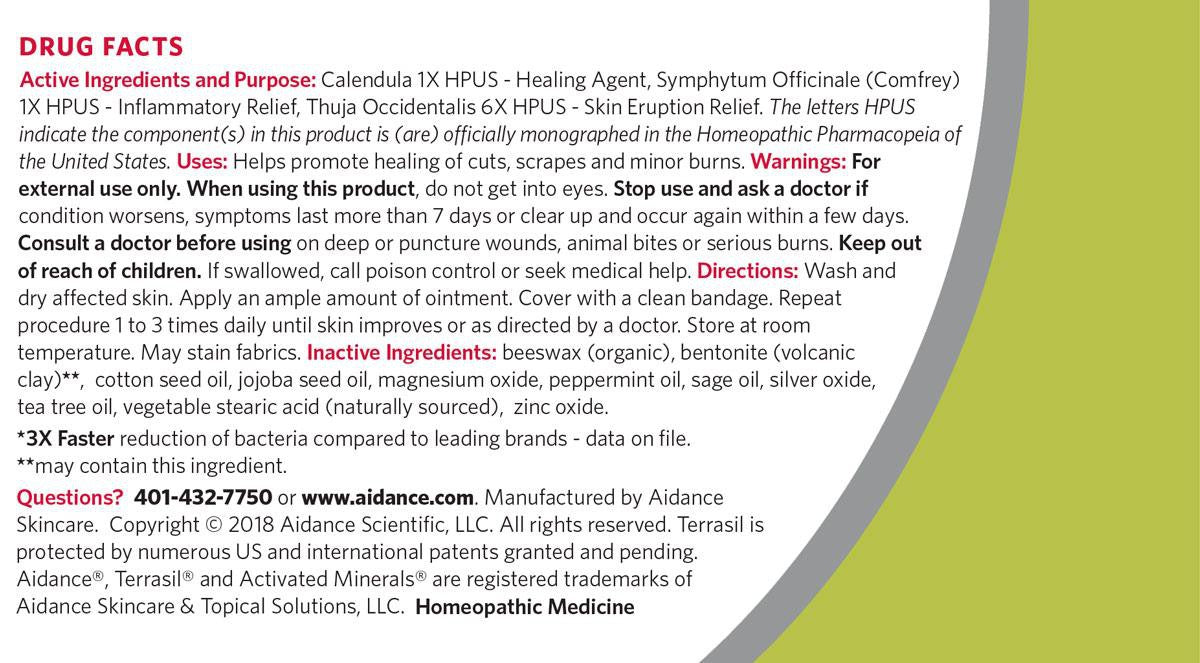 Ingredients:Active Ingredients: Calendula 1X HPUS as a healing agent, Comfrey (Symphytum Officinale) 1X HPUS for inflammatory relief, Thuja Occidentalis 6X HPUS for skin eruption relief. Inactive Ingredients: Beeswax (organic), Cotton seed oil, Jojoba seed oil, Magnesium oxide, Mineral-rich clay, Peppermint oil, Sage oil, Silver oxide, Tea tree oil, Vegetable stearic acid (naturally sourced), Zinc oxide.