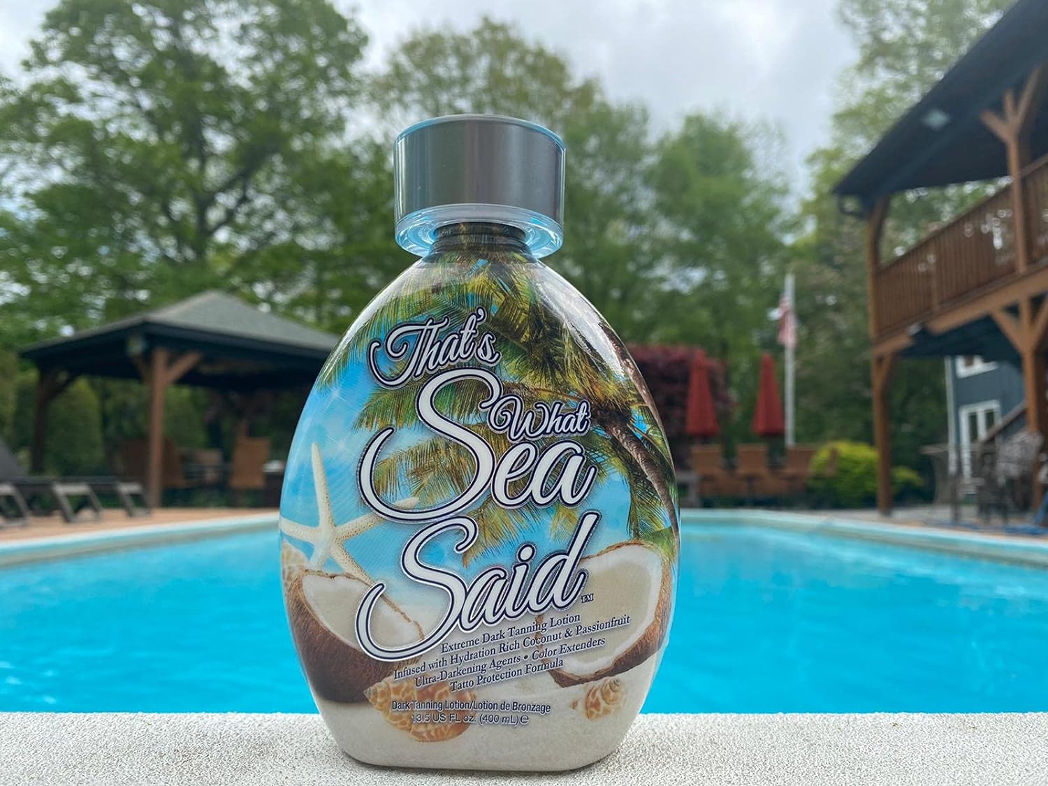 That’s What Sea Said tanning lotion contains natural accelerants to help you achieve a natural, golden tan without bronzing or fake processes. Ideal as a tanning lotion for tanning beds as well as poolside and beach use, our clever tanning formula contains a special blend of tyrosines, which help to stimulate melanin production and give you an all over deep, rich and sun kissed color.