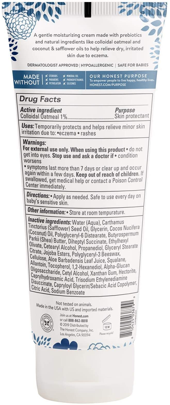 The Honest Company Eczema Cream Soothing Theraphy Skin Protectant Colloidal Oatmeal, Coconut 207 ml (1 Count)