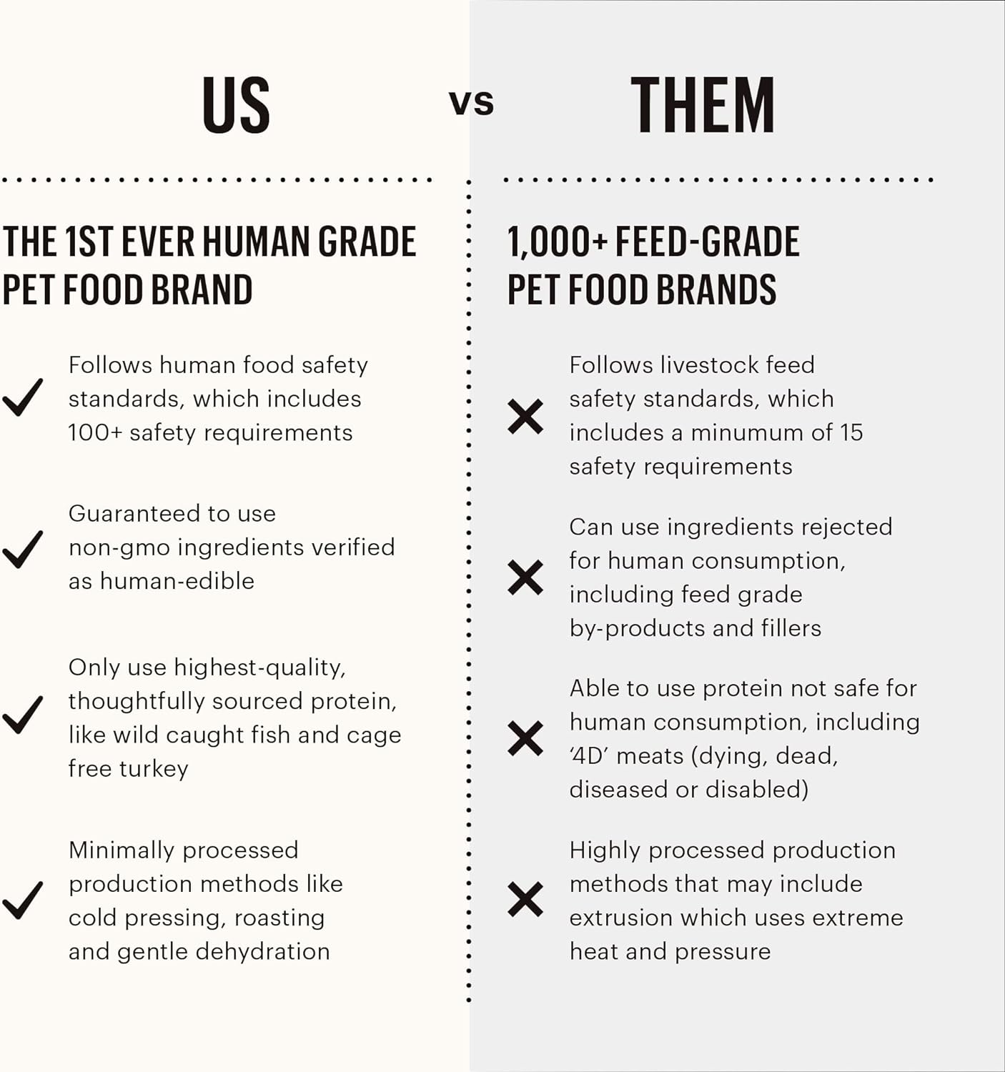 - HUMAN GRADE: Unlike most pet food, this recipe is 100% human grade – made with human grade ingredients & produced in a human food facility. That means higher quality ingredients & more safety standards, just like you'd expect from your own food.