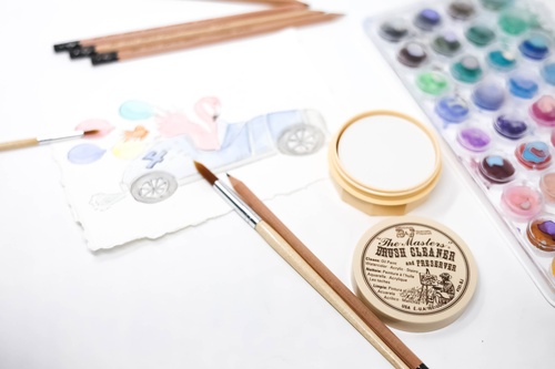 Keep brushes like new with this lemon-scented cleaner and Preserver. Even old, hardened, oil paint brushes may be restored to their original snap and luster. Non-toxic water-soluble cleaning compound works safely on oils, acrylics, or watercolors. Rinse brush under warm water, swirl it in the cleaner until a Lather forms, then rinse. Repeat if necessary until brush is clean. No harmful fumes or odors.
