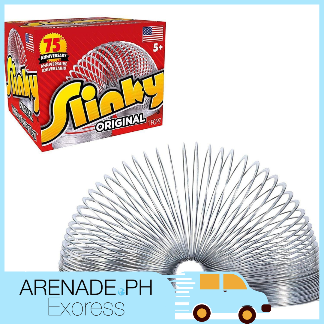 There’s only one Original Slinky Brand! Celebrate 75 years of wiggly-jiggly fun with Slinky! Generations of children and adults have loved playing with Slinky. This classic metal spring toy walks downstairs, alone or in pairs, and makes a slink-ity sound. First invented by mechanical engineer Richard James in 1943 during an experiment with tension coils. James accidentally dropped a spring on the floor and watched as it began to “walk.” Two years later, he introduced his walking spring toy in Gimbels Department Store during Christmas, and the Slinky immediately sold out. Since its debut, over 300 million Slinkys have been sold worldwide. In 2000, this classic toy was inducted into the National Toy Hall of Fame. Made 75 years ago, Slinky continues to be a favorite toy of children and adults all over the world.