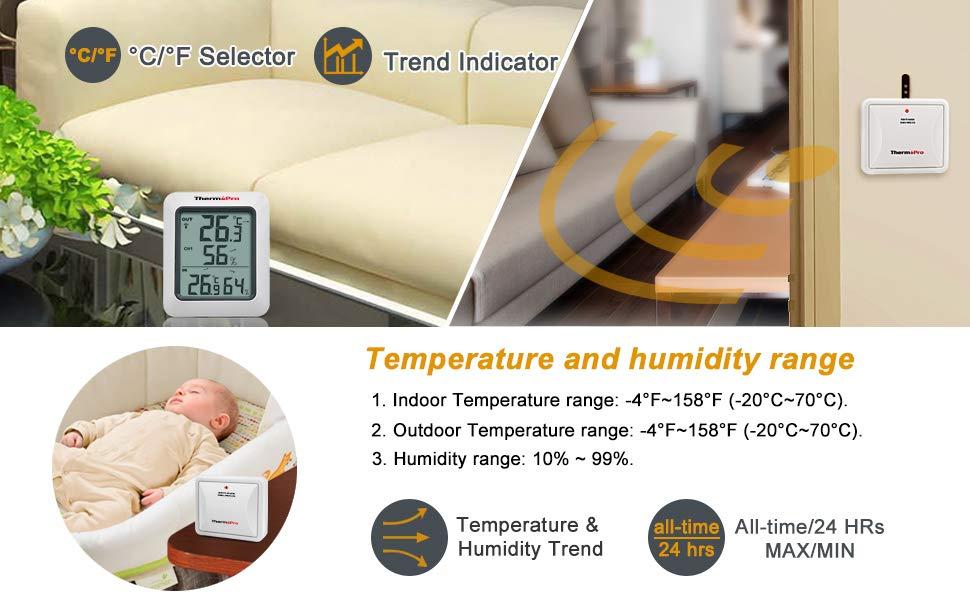 Thermopro indoor outdoor humidity monitor gauge equipped with professional grade sensors is a perfect choice to get accurate measurements.