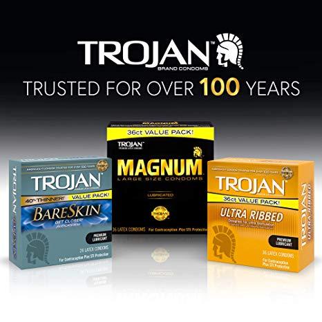 TROJAN MAGNUM BARESKIN Large Size Condoms. The Gold Standard in comfort and protection. Accept No Substitutes. These are the thinnest MAGNUM condom from TROJAN, designed to provide heightened sensitivity and comfort. They are larger than the standard condom with a wider, contoured shape for added comfort, while the tapered base ensures a secure fit. Silky smooth lubricant ensures a natural feel and sensitivity. They’re made from a premium quality latex and are electronically tested to help ensure reliability. These condoms reduce the risk of unintended pregnancy and sexually transmitted infections (STIs) while you play. For extra safety, there is a special reservoir end. Accept No Substitutes. Includes one 10 count box of TROJAN MAGNUM BARESKIN Large Size Condoms. TROJAN Brand condoms are America's #1 condom, trusted for over 100 years. The TROJAN Brand promotes a safe, healthy, and fun sex life. From condoms to vibrators to lubricants, TROJAN Brand is dedicated to delivering innovative, high-quality products that offer pleasure and protection.