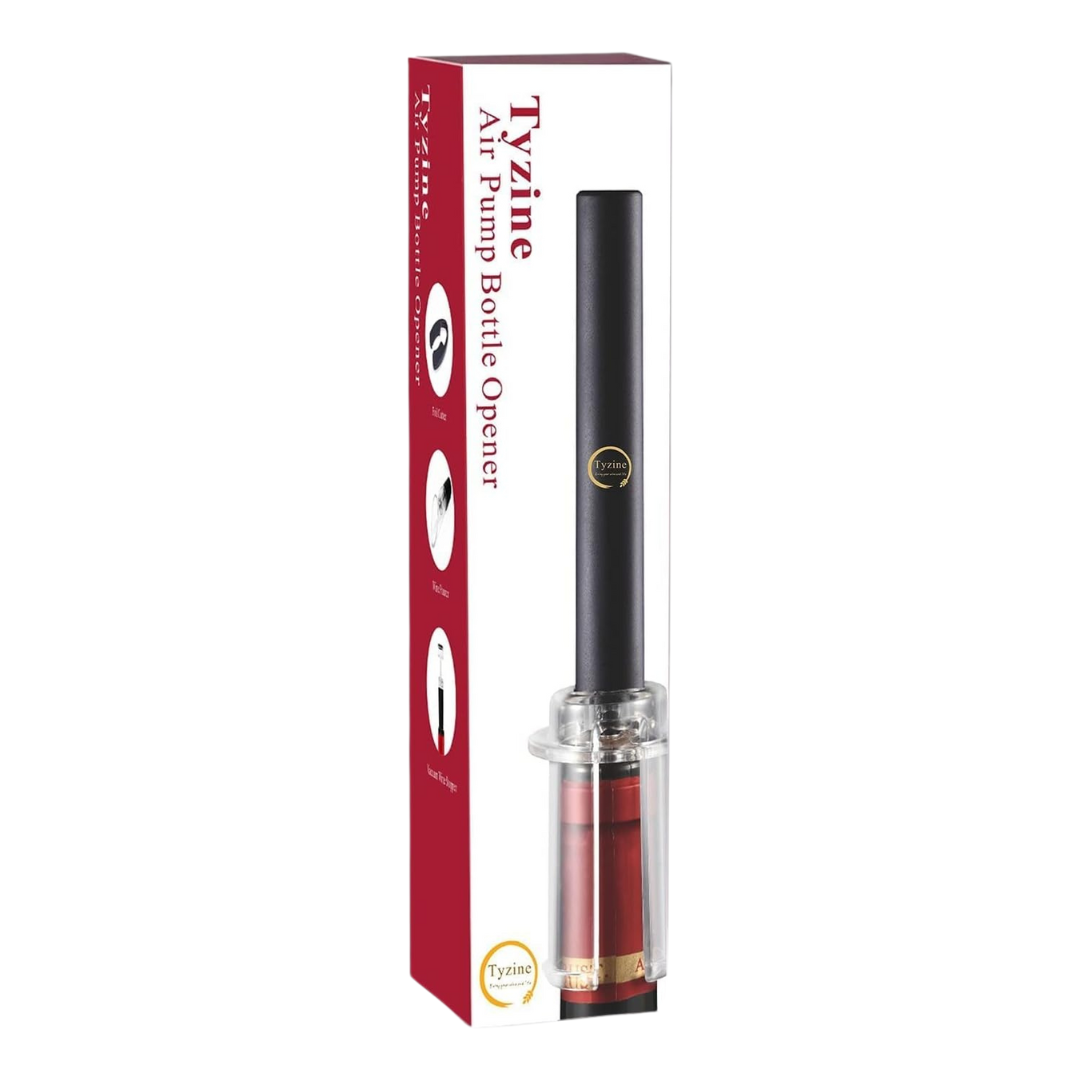 The Tyzine Wine Bottle Opener uses air pressure to effortlessly and safely remove corks, making wine enjoyment quick and easy. This 4-piece set includes a cutter, vacuum stopper, and wine aerator pourer. Compatible with all wine bottles, it offers a simple, fast, and mess-free experience. Lightweight, durable, and easy to clean, it’s an ideal gift for wine enthusiasts. (Not suitable for plastic corks or sparkling wines.)
