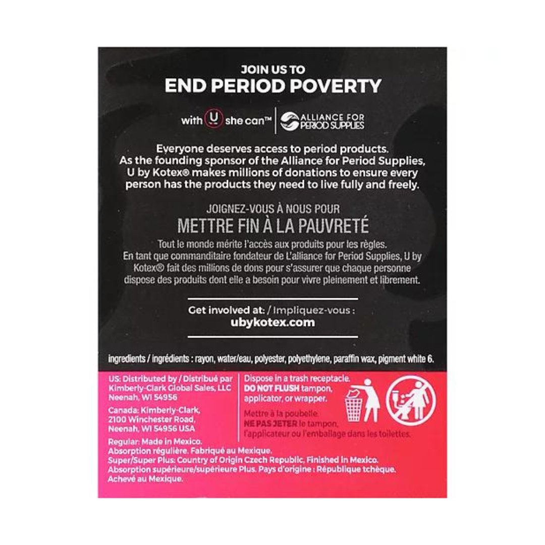 Pocket-sized and small enough to carry in your purse or pocket, these tampons go from compact to a full-size tampon in one easy step giving you comfortably compact, powerful protection. Pull the lower half of the tampon and when it locks in place, it’s ready to go! U by Kotex Click Compact Tampons are available in regular, super and super plus absorbencies. For backup period protection, try U by Kotex Barely There Pantiliners. U by Kotex feminine products are FSA/HSA/HRA-eligible in the U.S. Packaging may vary from images shown.