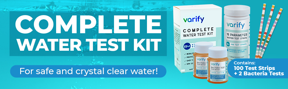 Varify 17-In-1 Complete Water Test Kit, 100 Strips + 2 Bacteria Tests Home Water Quality Test