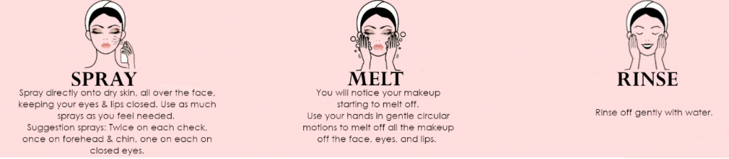 The spray makes it easier to target all areas of the makeup you want to remove, no wipes or pads needed. No longer do you have to tug on your delicate skin and lashes to remove makeup after a long day. All you have to do is SPRAY! Makeup Melt provides an easy solution to remove everyday makeup giving you a spa-like experience at home. Makeup Melt has four key antioxidants to nourish your skin after removal, leaving your skin bright, clean & renewed.