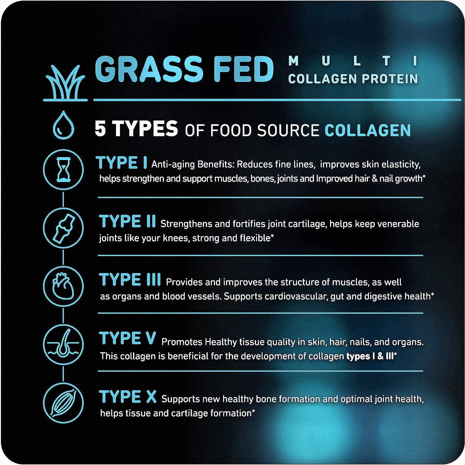 All-In-One Collagen Supplement with a potent blend of Hydrolyzed Collagen Peptides from Grass-Fed Beef, Collagen from Chicken Bone Broth, Collagen from Eggshell and Types I, II, III, V and X Collagen in a convenient small capsule form. Tones, Rejuvenates & Helps Joints: Reduction in collagen protein leads to weaker bones, fragile nails, brittle hair and dry skin. Our collagen peptides pill includes all 5 types of collagen hydrolysate to help restore your youthful skin health, hair, nails, bones, tendons, joints, and gut health. Promotes Vitality and Anti Aging: This pasture raised, grass-fed and marine collagen protein pills greatly support collagen regeneration which stimulates your body to effectively renew tissues, helping you maintain a radiant youthful skin complexion. High Absorption: Each collagen hydrolysate pill is enhanced with Digeseb for enhanced collagen absorption. The best alternative to collagen powder is collagen supplements as they are so quick and convenient to take with you in your handbag, car or pocket. Premium Quality: Our collagen pills for skin and hair are ethically sourced from grass-fed, pasture-raised sources, Non-GMO, free of hormones, gluten and dairy. Our Multi Collagen Complex Supplement provides you with a potent way to support your health, strength and beauty. Our collegen pills capsule are both for women and men, all products are manufactured in the USA in a GMP certified laboratory.