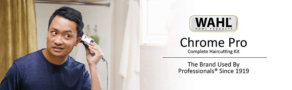 - The WAHL Chrome Pro Complete Haircutting Kit has 24 pieces including the clipper, clipper blade cover, 13 attachment guards, 2 hair combs, scissors, 2 hair clips, barbers cape, blade detail cleaning brush, blade oil, and convenient storage case with handle.