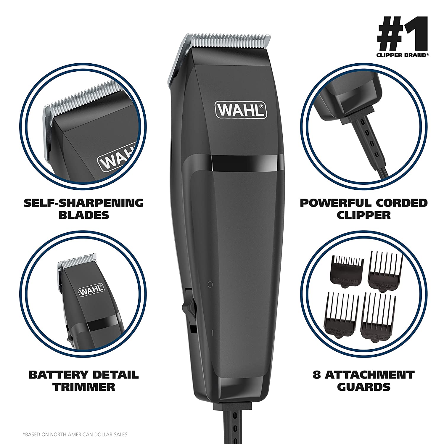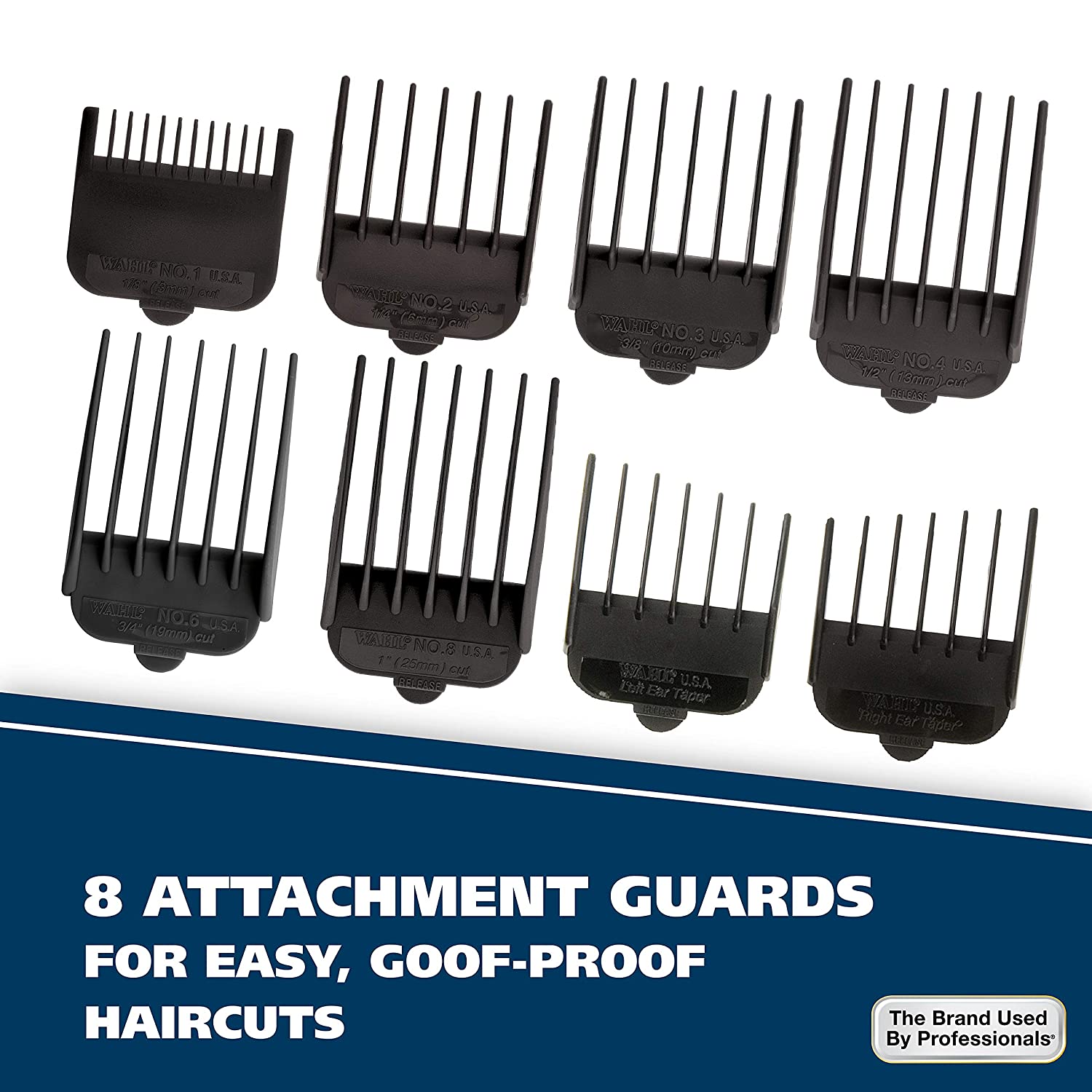 6 Included Guide Combs - #1 - 1/2", #2 - 1/4", #3 - 3/8", #4 - 1/2", #6 - 3/4", and #8 - 1"