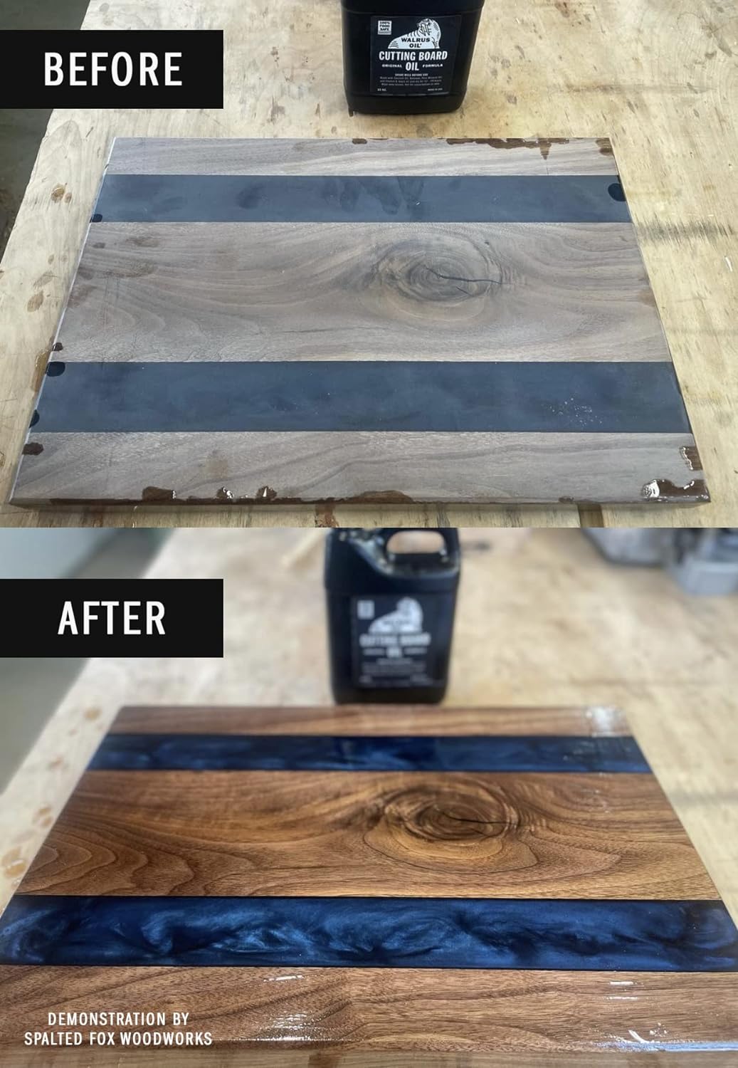 The original Walrus Oil recipe that's now enjoyed by thousands of woodworkers worldwide, made of Coconut Oil, Pure Mineral Oil, Vitamin E, and Beeswax, FDA compliant for food contact surfaces such as cutting boards and butcher blocks. - Walrus Oil is a liquid form and does not solidify under normal conditions, its highly shelf stable and has virtually no scent. It goes on smooth, not too thick and not to thin, and won't contaminate food with a strange taste. It will leave your board with a silky smooth finish, rich color, and a little shine. Use two coats for more depth and color. Choice wood conditioner for woodworkers, home chefs, hobbyist and more.