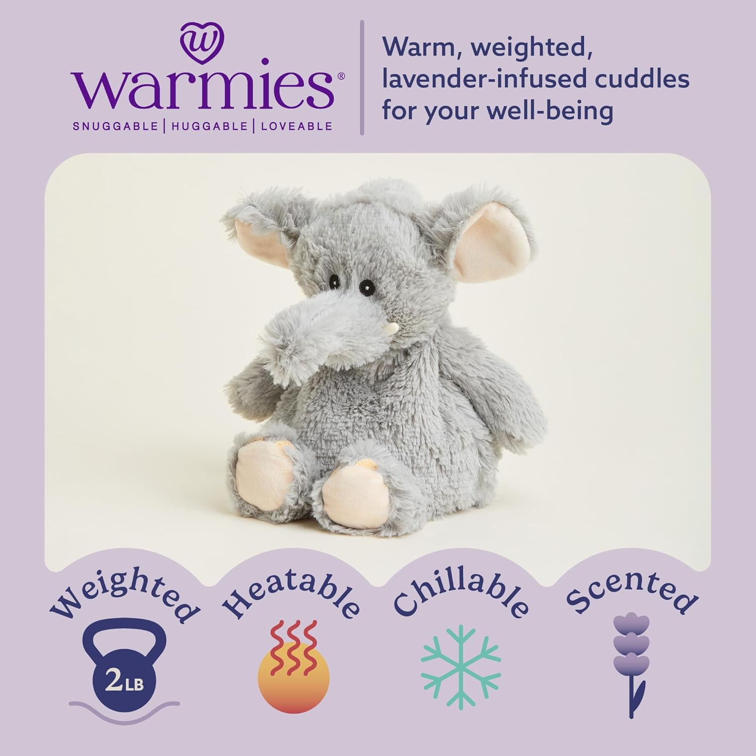 The Warmies Microwavable Stuffed Animal – Gray Elephant is a 13-inch, 2 lb plush toy designed for all ages. It provides soothing warmth when microwaved for up to 90 seconds or a refreshing cool touch when chilled in the freezer for a few hours. Filled with real grains for gentle weight and lightly scented with dried French lavender, it offers comfort and relaxation. Safe for kids and adults, it meets U.S. safety standards, making it an ideal gift for any occasion. Warmies deliver cozy self-care with warmth and calming aroma, perfect for stress relief and snuggles.