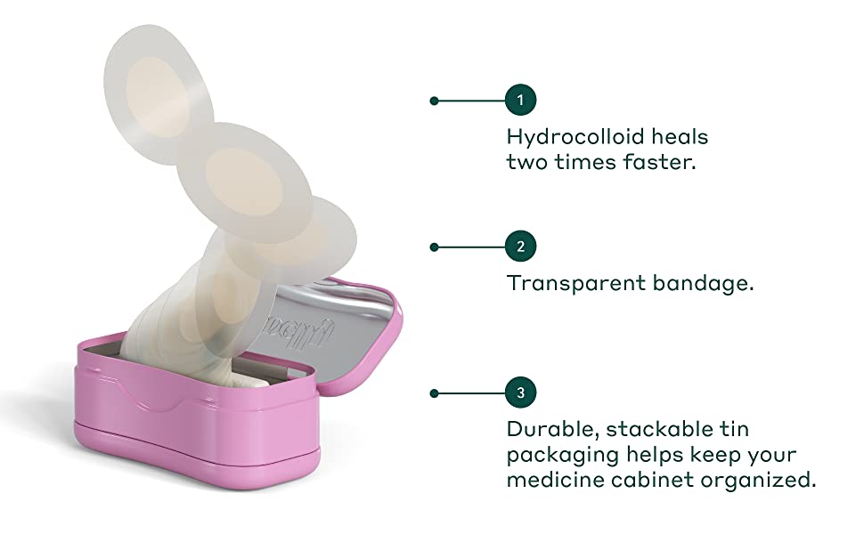 - Hydrocolloid pads seal in moisture to promote faster healing