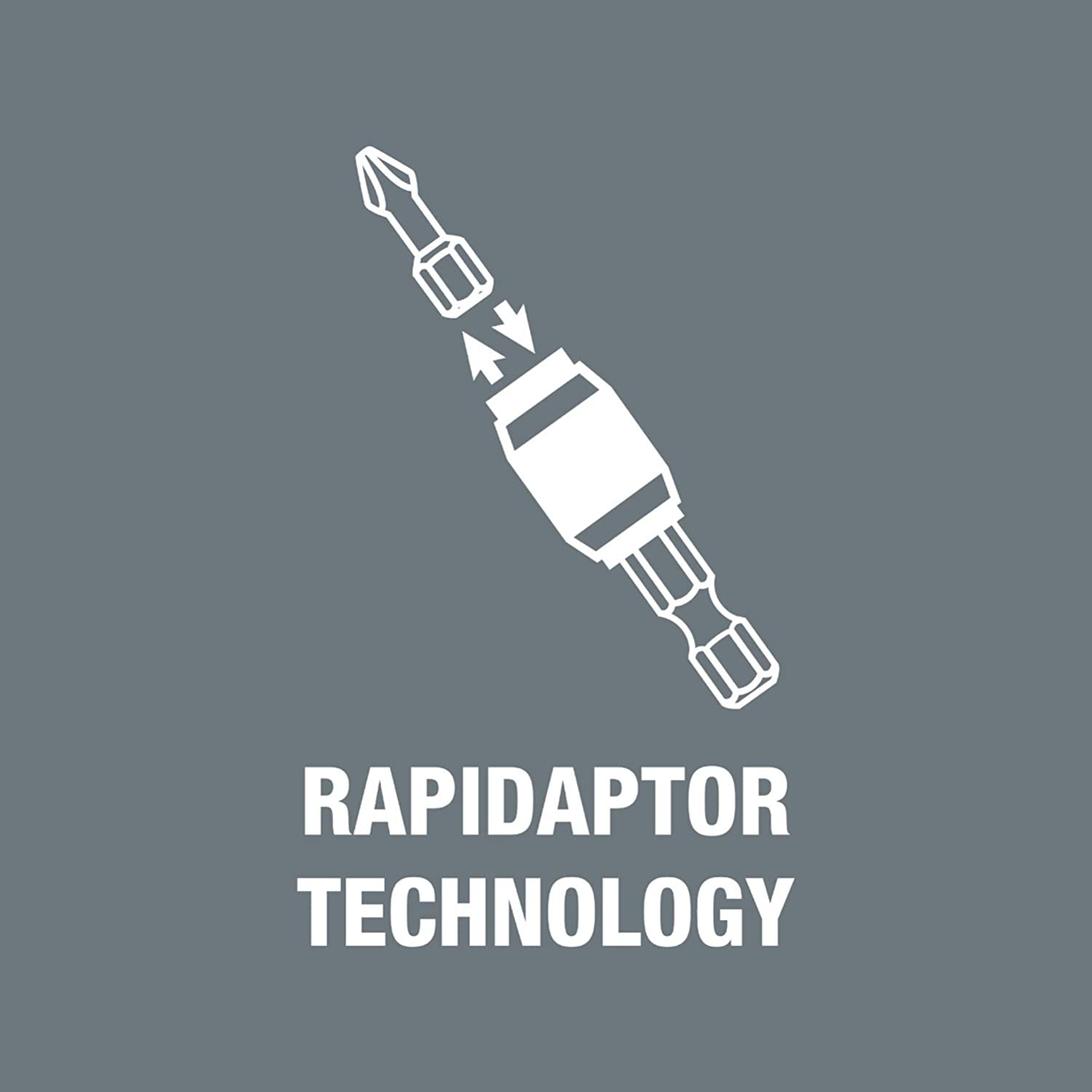 Wera 889/4/1 K Rapidaptor Universal Bit Holder is designed for rapid bit changes. Rapidaptor allows for quick one-handed bit change for both insert and power bits. Bits are easily inserted with press-in and self locking mechanism that holds bit securely and wobble free. Free-spinning outer sleeve stabilizes tool during screwdriving process, easily applying tool to screw to prevent slipping. Fits all 1/4” DIN 3126-C 6.3 and E 6.3 bits. Rapidaptor dimensions: 1/4” hex drive, 2-inch length. Wera – The Best Tools For The Job!