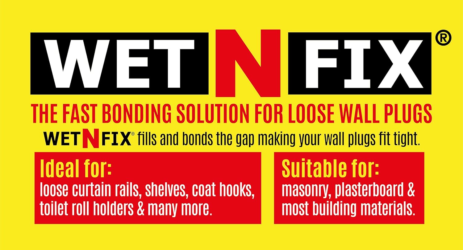 WETNFIX - Specifically created to solve the commonest DIY problem - securing wall plugs in weak crumbly walls or securing loose fittings that have come loose.
