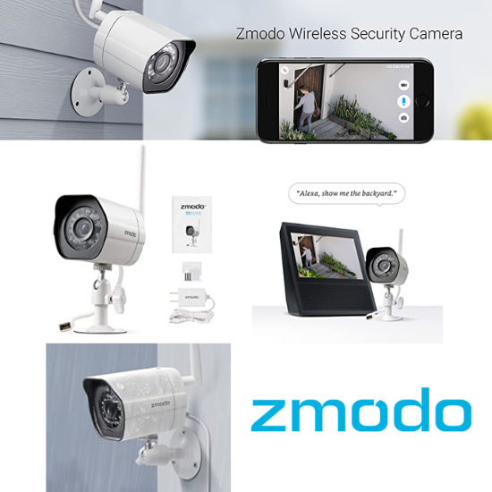 Zmodo wireless security camera system is a camera monitoring solution for your home or business. Setup is as simple as downloading the free Zmodo App, creating an account, and connect the cameras to your Wi-Fi. Once setup, you can remotely view from anywhere with a smartphone, iPad or PC. Enjoy peace of mind no matter where you are and be notified when something happens. The 'Wireless' refers to having your camera connected to both the internet and your cellphone in a wireless way in order that you may remotely get through the camera. Meanwhile, power adapters are used for constantly running the camera. Zmodo Wireless Outdoor Cameras work with Alexa for voice control. Please make sure the firmware version of your camera is V8.0.1.46 or later before connecting to Echo Show. Otherwise, please update it to the latest version directly in Zmodo app.IP65 rating makes it ideal for outside use and will keep recording rain or shine. This weatherproof camera can be placed both indoors and outdoors, with a supported temperature range from 14℉ to 122℉. The security camera protects every inch of your home through every season.